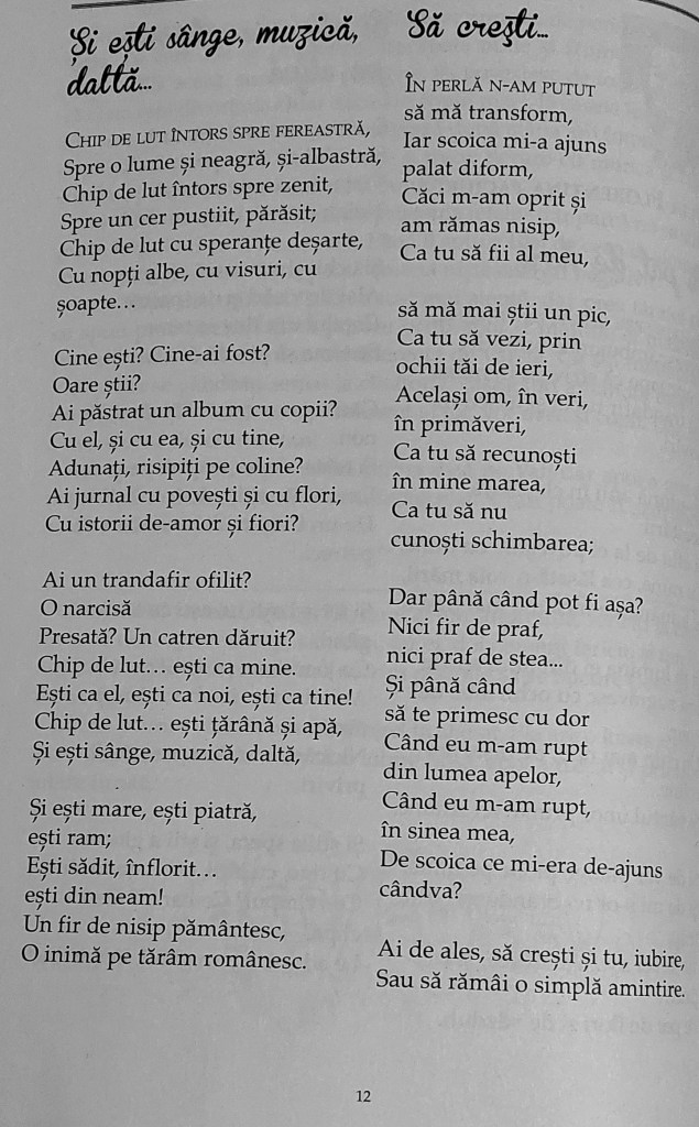 Cum se naște o carte? Nu din căutarea perfecțiunii, ci, mai degrabă, din căutarea unor complicități: ale autorului cu sine însuși, ale omului ce ține în palmă penelul cu cititorul. Se naște din speranța că cel puțin două suflete vor vibra în fața acelorași cuvinte. Și crește, slujind cu fiecare clipă o fărâmă de eternitate.