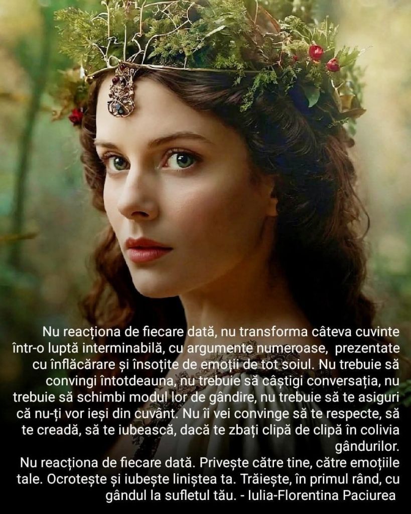Nu reacționa de fiecare dată. Privește către tine, către emoțiile tale. Ocrotește și iubește liniștea ta. Trăiește, în primul rând, cu gândul la sufletul tău.