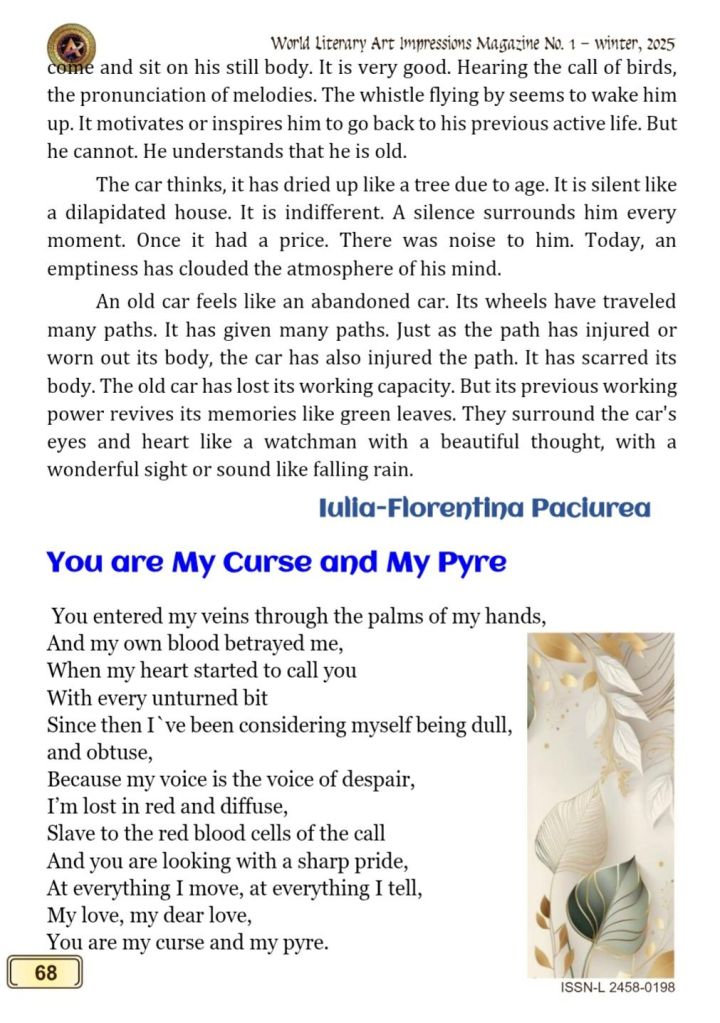 ✍️🏻Co-author of World Literary Art Impressions Magazine and very proud to be! Thank you, Lenuș Lungu! I thank the entire editorial team! Congratulations to all! ↘️⬇️↙️