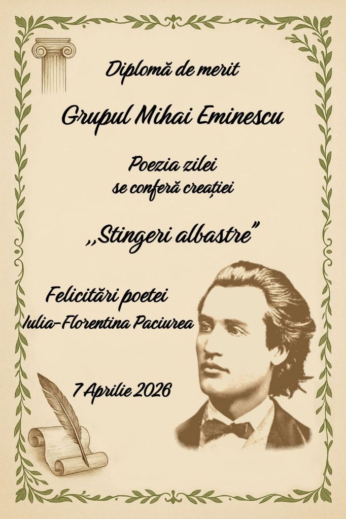 O poezie despre pierdere și rememorare devine, în esența ei, o formă de introspecție profundă, în care eul liric își reconstituie trecutul afectiv și încearcă să dea sens unei absențe care continuă să apese asupra prezentului. Tema centrală se conturează în jurul destrămării iubirii și al persistenței amintirilor, sugerând atât sfârșitul unei relații, cât și transformarea treptată a trăirilor intense în ecouri fragile, marcate de melancolie și reflecție asupra timpului ireversibil. Debutul poeziei introduce cititorul într-un univers al separării deja consumate, dar încă resimțite cu intensitate, prin versuri precum „Te-am pierdut, cândva, prin viață” și „M-ai pierdut la o răscruce”, care sugerează atât distanțarea fizică, dar și ruptura destinelor. Imaginea simbolică a răscrucii capătă astfel valoare existențială, marcând un moment decisiv în care „toate visele din ață” ajung „să se-mpletească în cruce”, sugerând destrămarea idealurilor și transformarea lor într-un simbol al suferinței și al renunțării. În continuare, discursul liric dezvoltă ideea unei speranțe fragile, aproape iluzorii, în care amintirile sunt reconstituite din „iluzii” ce încearcă zadarnic „să reziste la noapte”, ceea ce accentuează caracterul efemer al visurilor. Imaginea „amintirilor înfrigurate” sugerează acea răceală emoțională instalată treptat, ca o consecință inevitabilă a despărțirii. Atmosfera devine tot mai apăsătoare, fiind construită printr-un decor dominat de monotonie și stingere, în care „pe ferestre doar crepuscul” „luminează fad, minuscul”, accentuând ideea unei existențe lipsite de vitalitate. Privirile „din porțelan” aduc în prim-plan fragilitatea și artificialitatea trăirilor prezente, în contrast cu intensitatea autentică a trecutului, ceea ce contribuie la conturarea unei stări de alienare profundă. Rememorarea iubirii pierdute capătă nuanțe delicate și contradictorii, întrucât „jarul ochilor albaștri” „a apus cândva, demult”, dar, în același timp, pare să mai existe „un licăr tremurând”, sugerând că sentimentul nu dispare complet, ci persistă într-o formă latentă. Această alternanță între stingere și supraviețuire simbolică reflectă complexitatea memoriei afective, care refuză să se estompeze definitiv. Evocarea detaliilor fizice, precum „mâinile trandafirii” cărora „le lipsește din culoare”, amplifică ideea de pierdere a vitalității și a căldurii sufletești, transformând elementele concrete în simboluri ale degradării emoționale. Gestul de a strânge „perdele rozalii” devine, astfel, o formă de agățare de trecut, de „amintiri din ani cu soare”, care contrastează puternic cu prezentul dominat de gol și absență. Imaginea „clanței ruginite” sugerează în mod sugestiv imposibilitatea revenirii la ceea ce a fost cândva, devenind un simbol al închiderii definitive și al stagnării. Aceasta, „lipsită de speranță”, este „zgâlțâită doar de vânt”, ceea ce indică o lume abandonată, în care mișcarea nu mai este determinată de voința umană, ci de forțe exterioare impersonale. Spre final, reflecția lirică se amplifică într-o dimensiune aproape apocaliptică, prin „cugetarea bizară” care anunță că „stau să moară, să dispară/razele de pe Pământ”, sugerând extinderea suferinței individuale la nivel universal. Cu toate acestea, în acest univers al „stingerilor albastre”, unde „nimic sacru nu rămâne”, se conturează o ultimă valoare salvatoare, aceea a iubirii care „transcende orice ,,mâine”, sugerând că, dincolo de destrămare și uitare, există sentimente care depășesc limitele timpului și ale existenței. Se cuvine remarcată finețea expresivă și coerența imagistică a autoarei Iulia-Florentina Paciurea, care reușește să redea, cu sensibilitate și echilibru, complexitatea trăirilor interioare, construind o poezie profundă, marcată de autenticitate și forță emoțională. Felicitări autoarei Iulia-Florentina Paciurea pentru sensibilitatea și rafinamentul artistic demonstrate în această creație lirică, pentru profunzimea emoțiilor transmise și pentru capacitatea de a transforma trăirile interioare într-un discurs poetic coerent și expresiv, care impresionează și creează o legătură de neuitat cu cititorul.